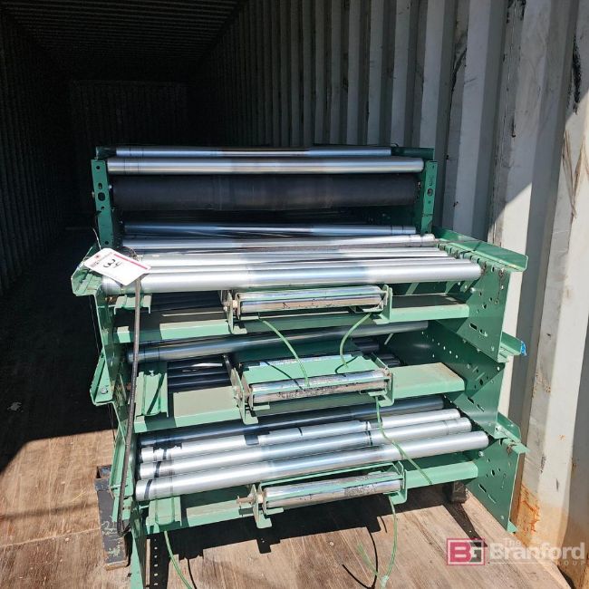 Lot of (4) Sections of Roach 40" W Powered Roller Conveyor, 480V; (1) 5' L Section, (2) x 8' L Sections, (1) x 9' L Section; Note: No Support Legs