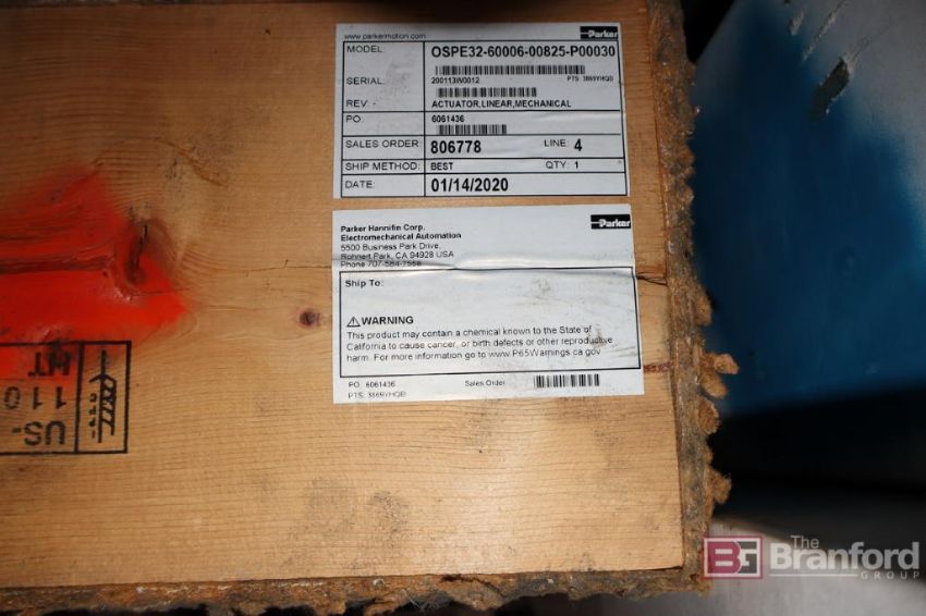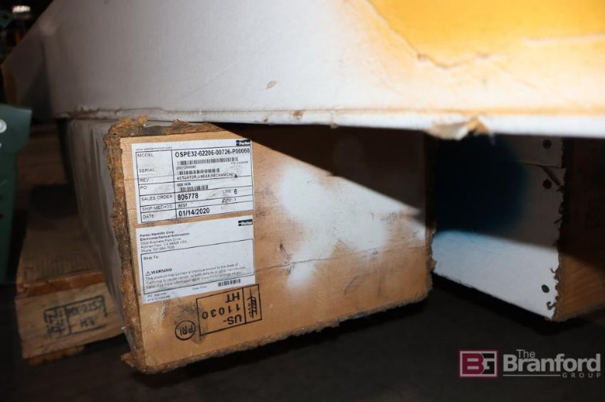 Lot of (6) Parker Belt-Driven Linear Actuators, Including Models OSPE32-60006-01900-P00060, OSPE32-62206-00726-P00060, OSPE32-60106-01800-P00060 and OSPE32-60106-00825-P00030