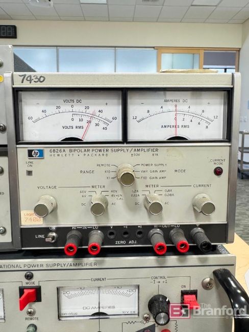 (1) Hewlett Packard 6028A DC Power Supply; S/N 6J5003. (1) Hewlett Packard 6236B Triple Output Power Supply. (1) Hewlett Packard 6826A Bipolar Power Supply/ Amplifier. S/N 2349G00773.(1) Kepco Bipolar Operational Power Supply/ Amplifier. Model: BOP20-20M; S/N E145225, Located: Amp