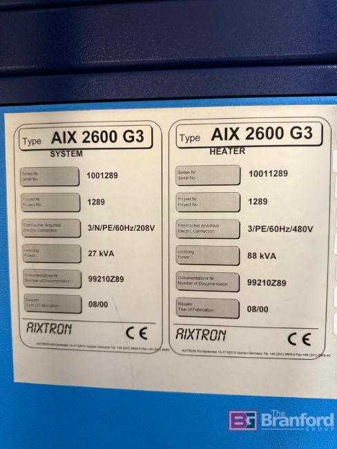 Aixtron Planetary Reactor; Type: AIX 2600G3; S/N 10011289; Date: 08/2000, Located: P1