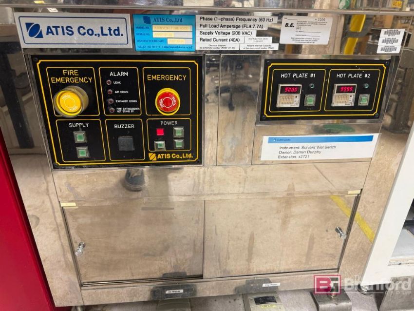 ATIS Solvent Wet Bench; Model: 3, Solvent Fume Hood; S/N AW07-07-05; Located: B Advanced FA Lab