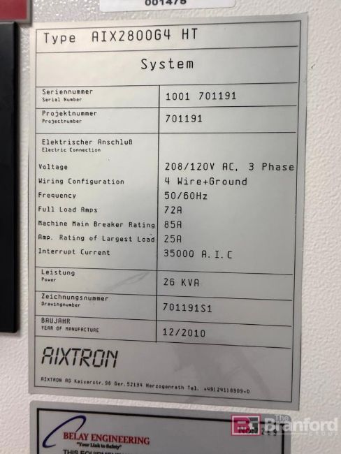 Aixtron Planetary Reactor; Type: AIX2800G4 HT; S/N 1001 701191; Date: 12/2010, Located: D8