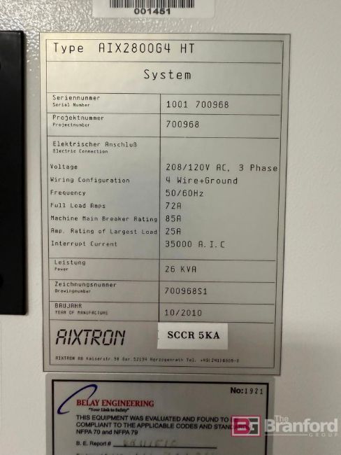 Aixtron Planetary Reactor; Type: AIX2800G4 HT; S/N 1001 700968; Date: 10/2010, Located: D3
