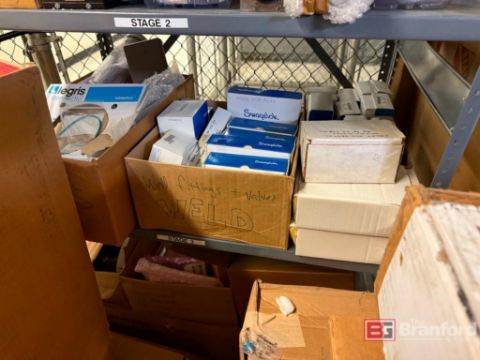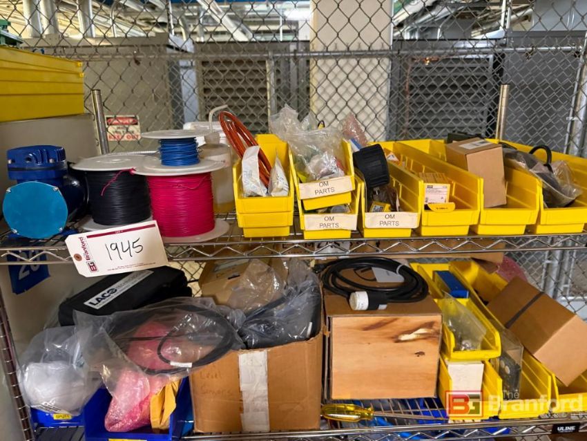 Metal Rack w/ Spare Parts Contents; Metal Storage Cabinet w/ Contents; Uline Rack w/ Spare Parts Contents