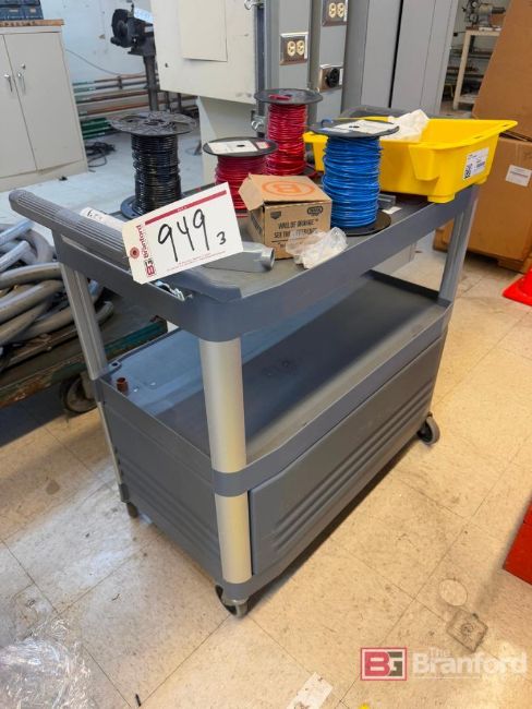Lot consisting of (2) Wire Racks w/ Contents including assorted Wire, (1) Push Cart w/ Contents, Located: B