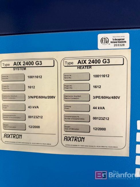 Aixtron Planetary Reactor; Type: AIX 2400 G3; S/N 10011612; Date: 12/2000, Located: P4