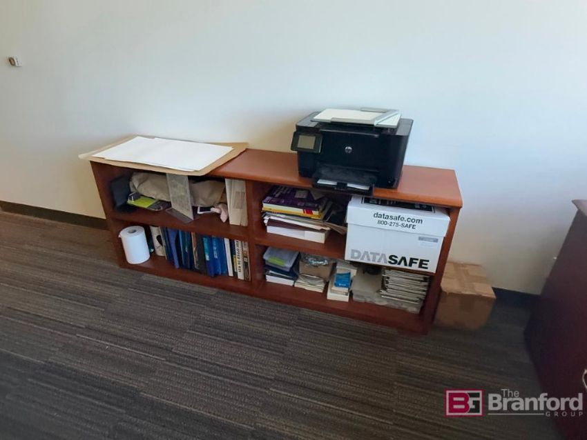 (1) L Shaped Desk. (1) Aeron Chair. (2) Office Credenza's. (3) Assorted Chairs. (2)-HP Monitors. (2) Art Pieces, Located: Floor 2