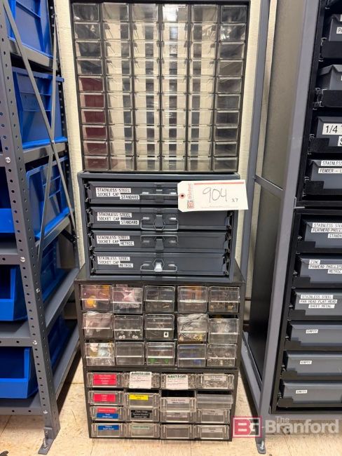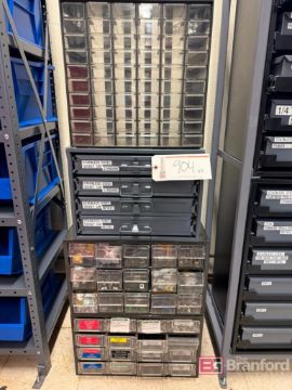 Lot (3) Racks w/ Assorted Parts Bins w/ Nuts, Bolts, Washers, Located: Basement Workshop