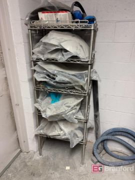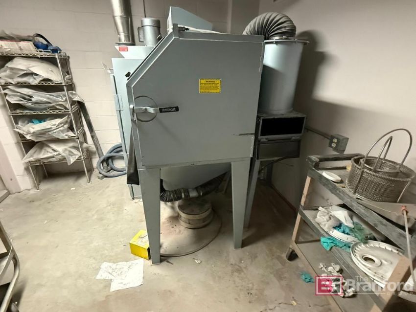 Uniblast Technologies Media Blast Machine; S/N 04997. w// Leeson Motor; 1-HP. Metro Rack w/ Contents. (2) Stainless Steel Push Cart on Casters w/ Contents.