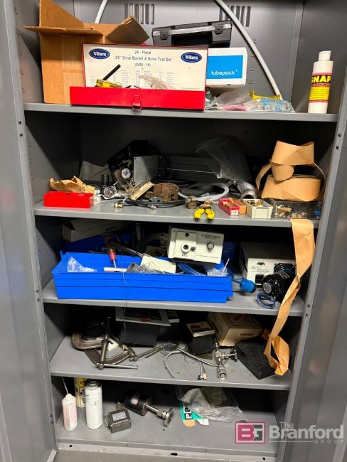 (2) Tennsco Metal Storage Cabinets w/ Contents. Metro Storage Rack w/ Contents