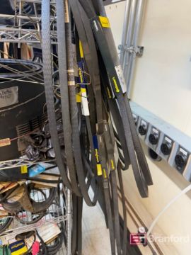 Lot consisting of Rack w/ contents including all sorts of Spare New Belts, Located: B