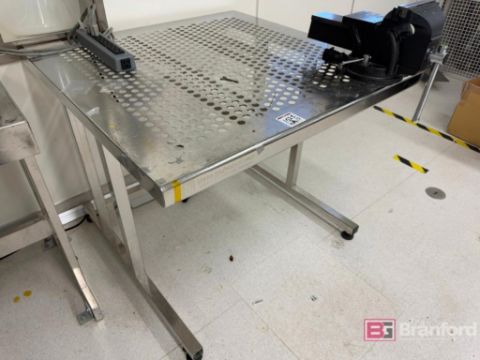 Lot (3) Stainless Steel Worktables; Includes (1) Benchtop Vice, Located: Amp Lab