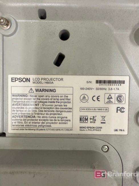 (2) Epson Bright Link 585Wi LCD Projectors; Model: H600A; Lamp Type: ELPLP80. Epson Power Lite 685W LCD Projector; Model: H744A; Lamp Type: ELPLP91. Includes Celing/Wall Mounts