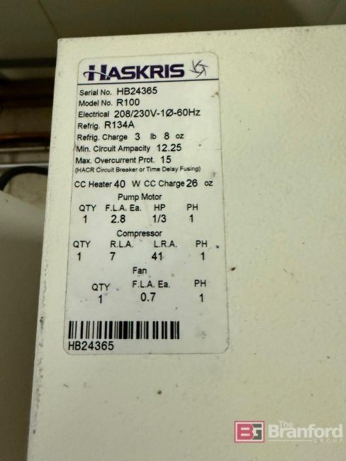 Haskris Chiller; Model: R100; S/N HB24365, Located: Outside Doghouse