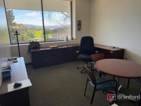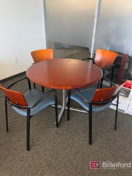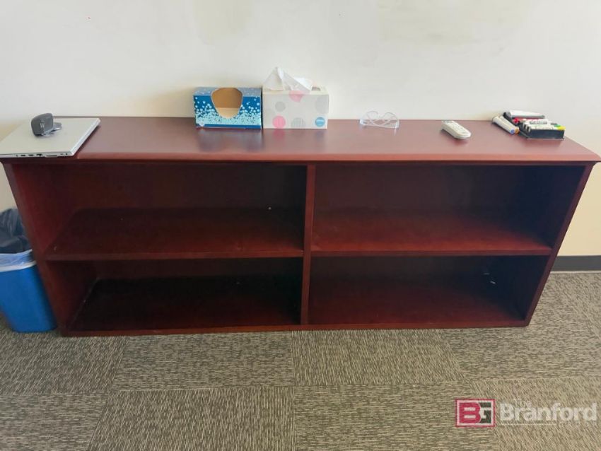 (1) Desk. (1) Office Chair. (1) Office Credenza. (1) Small Book Shelf. (4) Assorted Chairs. (1) Circular Table, Located: Floor 2