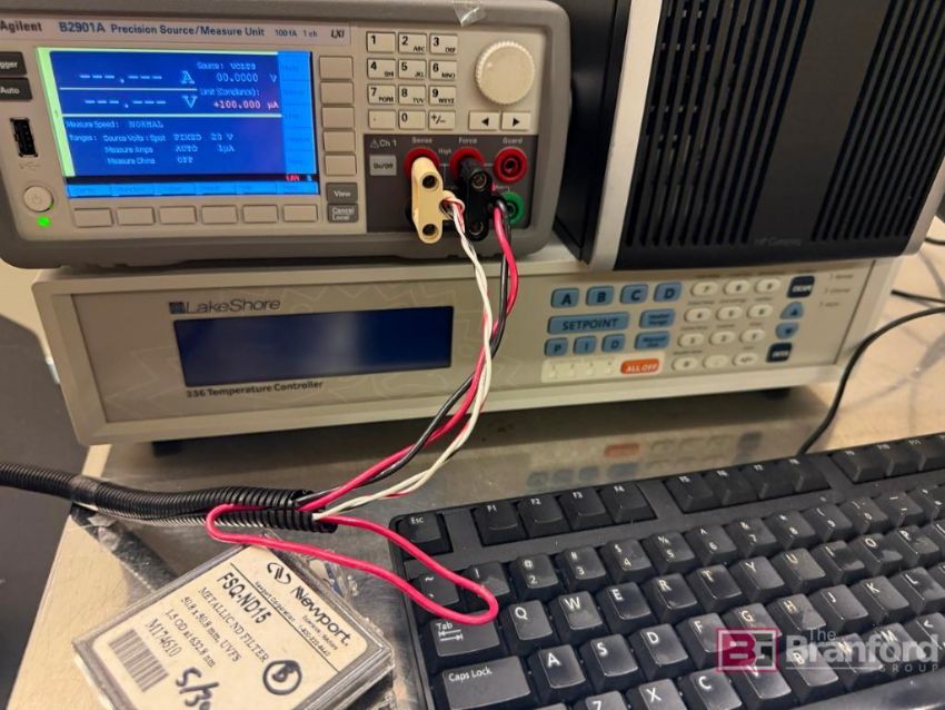Advanced Research Systems Cryogenic Probe Station w/ Optical Microscope and Micropositioners; Model DE-204AF; SN 11-E1182; w/ Newport Table.(1) Agilent B29001A Precision Source/Measure Unit. (1) LakeShore 336 Temperature Controller. (1) Hi CUBE Pfeiffer Vacuum. (1) Edmond Optics MI-150 High Intensity Illuminator, Located: B Advanced Characterization Lab