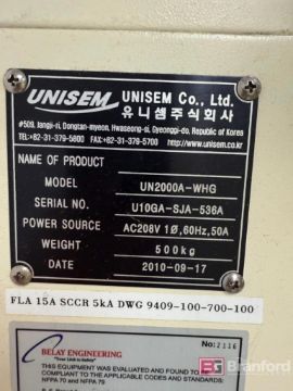 Unisem Gas Scrubber; Model: UN2000A-WHG; S/N U10GA-SJA-536A; Date: 2010