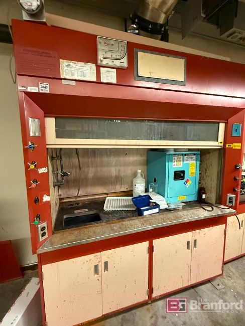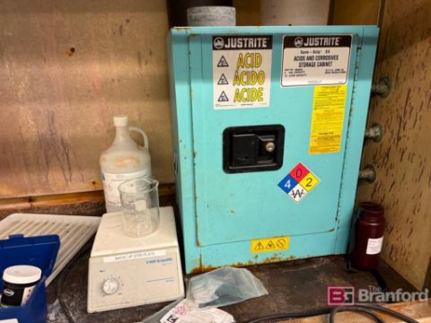 Permlab Equipment Corporation Laboratory Fume Hood; Model: H-704 66288-10. VWR Scientific 360 Sirrer. Justrite Small Flammable Cabinet