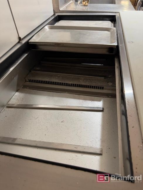 Traulsen Stainless Steel Commercial Refrigerated Sandwich/Salad Prep Table. Two Door Bottom Refrigerator, Located: Cafeteria