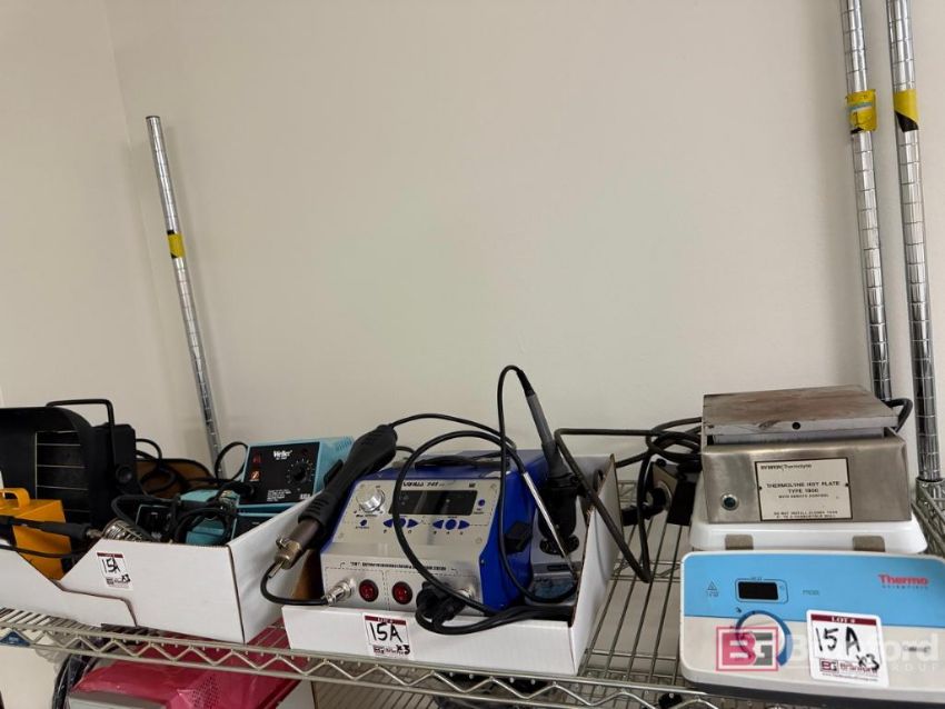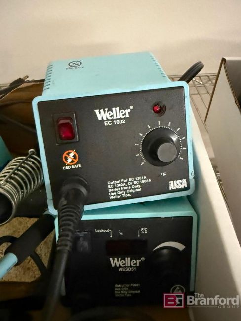 (2) Weller WESD51 Solders; (2) Weller Smoke Absorbers. Weller EC 1002 Solder. Yihu Solder Rework Station; Model: 948 II. Thermo Scientific Hot Plate