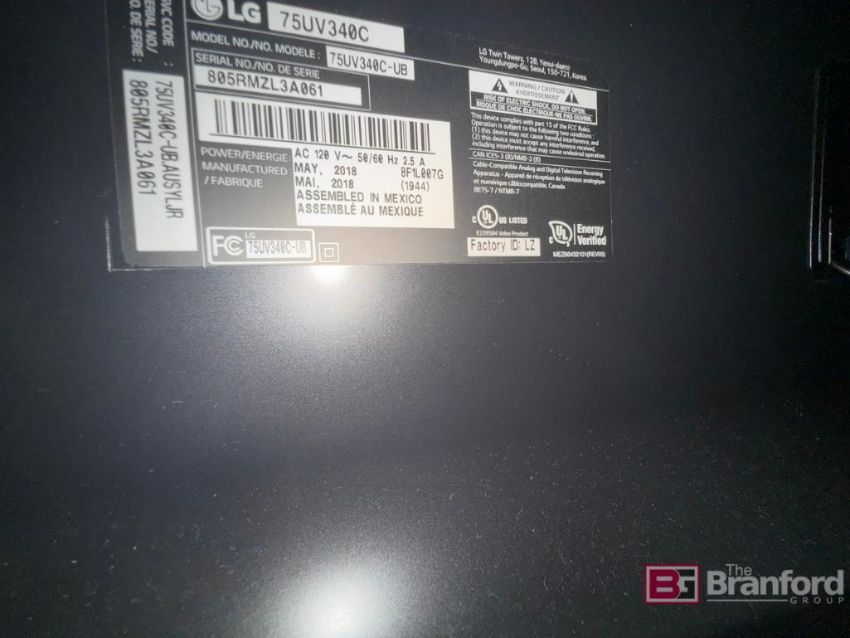 (1) Oval Shaped Conference Table. (10) Global Industrial Office Chairs. (2) 75" LG LED TV's; Model: 75UV340C; S/N 805RMZL3A061. (1) iPad, Located: Floor 2