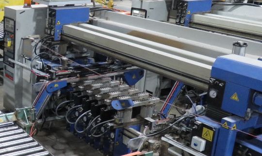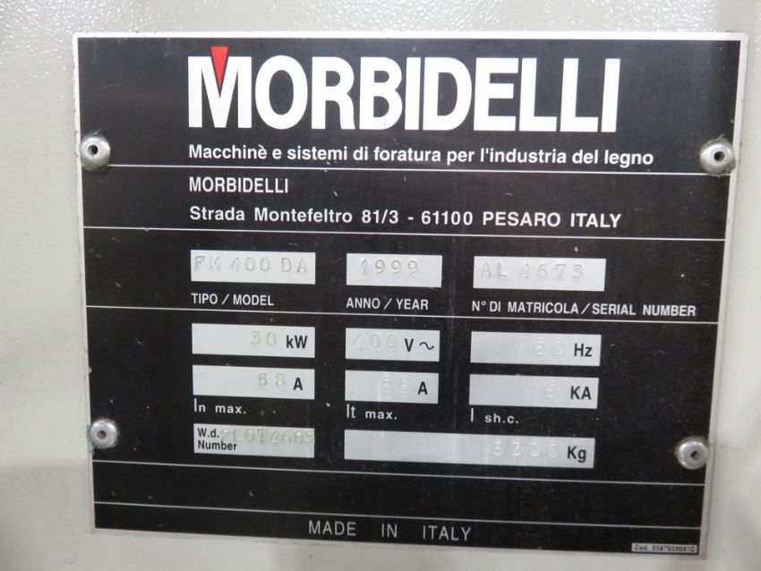 Morbidelli FM400DA Feed Thru Automatic Boring Machine, S/N AL4673; Asset # J1030; Green conveyor sections not included