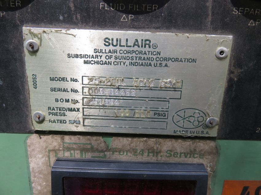 Sullair LS25-200L ACAC 24KT Rotary Screw Air Compressor, 200-hp, S/N 003-84452; Asset # J639; Located Outside