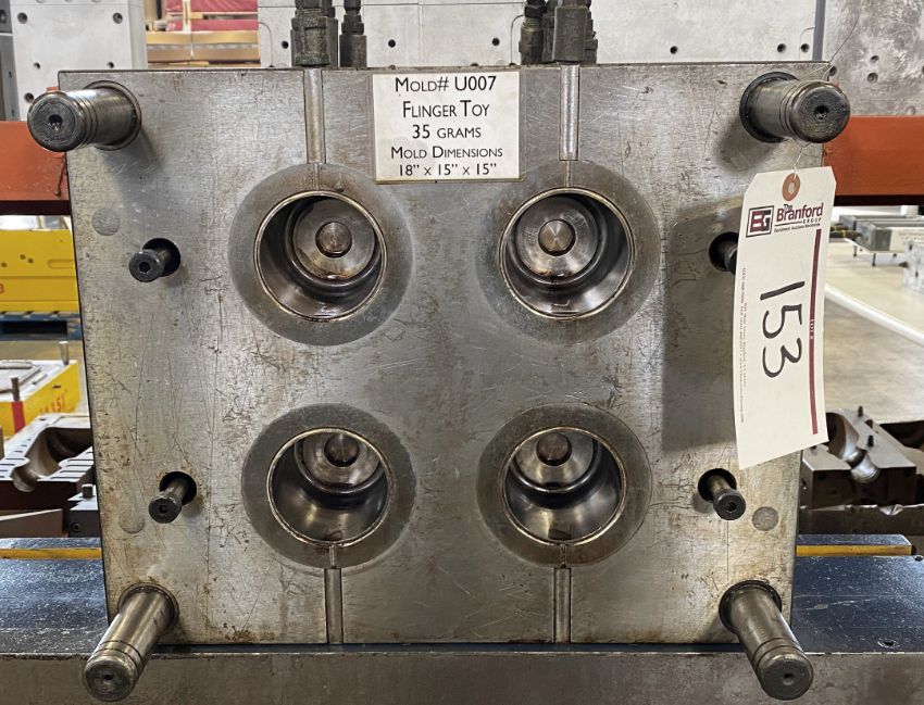 Flinger - Throw Toy; Cavities: 4; Mold Dimensions: 18" x 15" x 15"; Part Dimensions: 3" Diam x 3" Ht; Part Weight: 35 grams; Runner: Hot; Weight: 1,100 lbs.; Notes: Frisbee type toy. Toss & watch it fly. Could be the next big hit. Light weight with printable surface for a promotional item. **Please note- there is an individual Rigging/Banding/Mold Preparation/Loading onto Truck or into Container Fee added to your invoice of $75