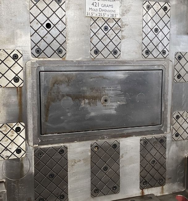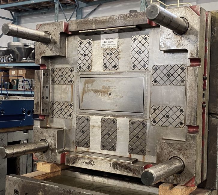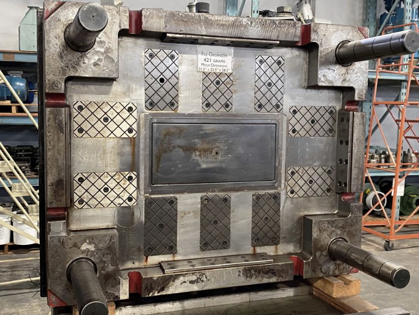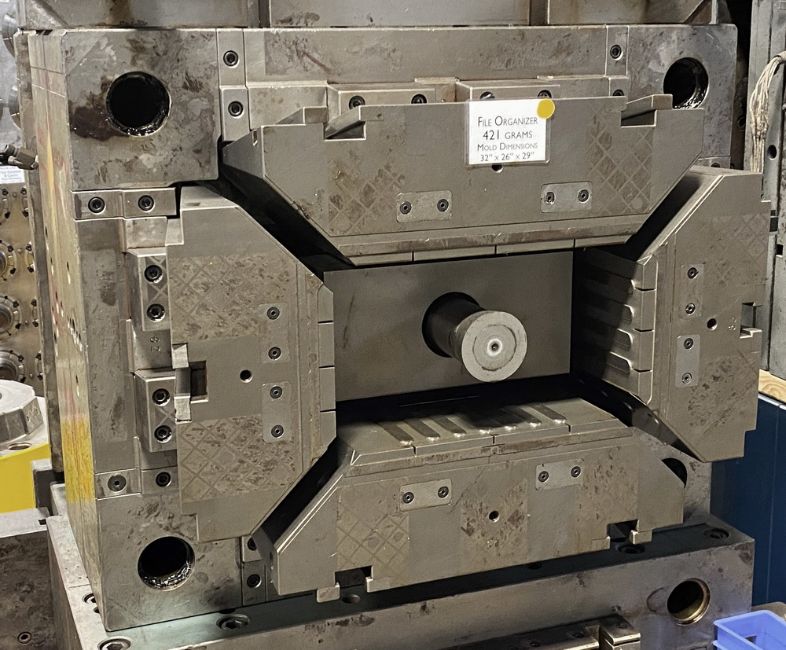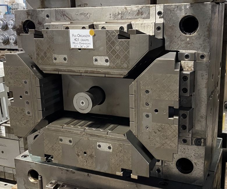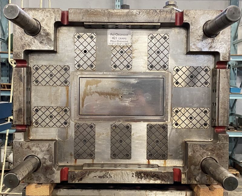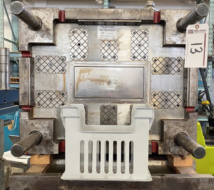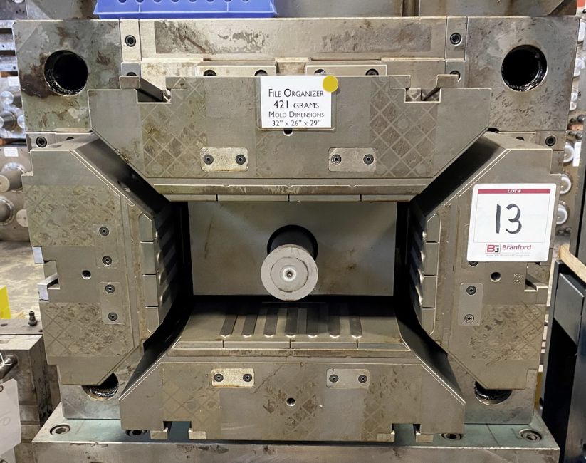 { Choice of lots: 13, 14 } File Organizer; Cavities: 1; Mold Dimensions: 32" x 26" x 29"; Part Dimensions: 35 x 17 x 27 cm; Part Weight: 421 grams; Runner: Hot; Weight: 6,100 lbs.; Notes: Mechanical Cores - Fully Automatic Production Mold - Made in USA **Please note- there is an individual Rigging/Banding/Mold Preparation/Loading onto Truck or into Container Fee added to your invoice of $250