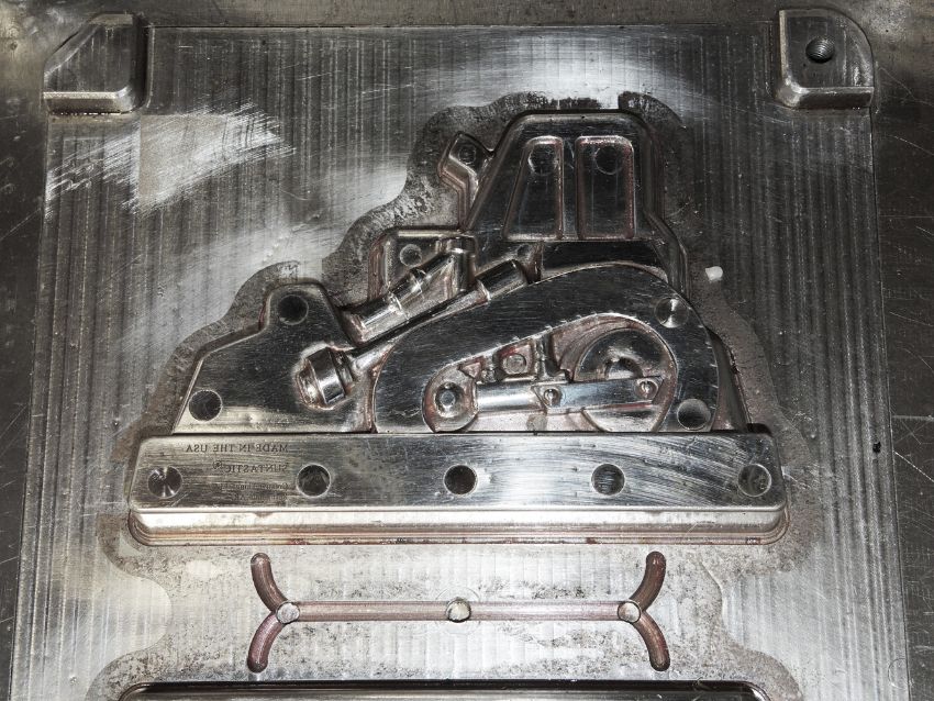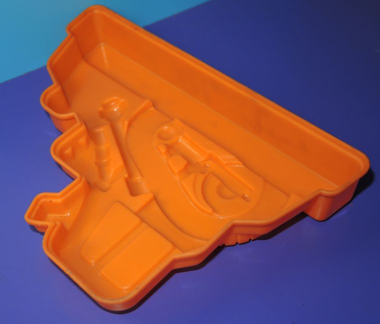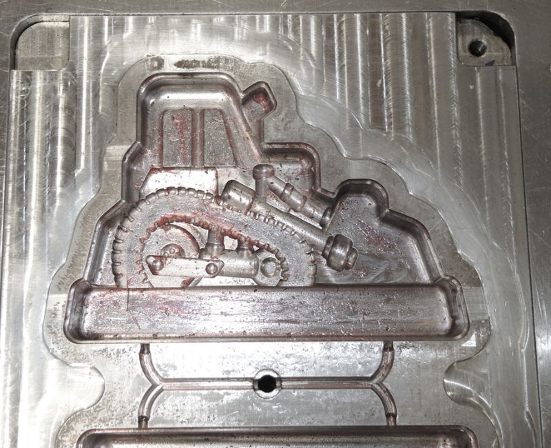 Sand Toy Mold; Cavities: 1+1; Mold Dimensions: 17.75" x 13" x 12"; Part Dimensions: 6.5" Long x 4.5" Wide; Part Weight: 25 grams; Runner: Cold; Weight: 700 lbs.; Notes: Excavator and Bulldozer Sand Toy Molds **Please note- there is an individual Rigging/Banding/Mold Preparation/Loading onto Truck or into Container Fee added to your invoice of $50