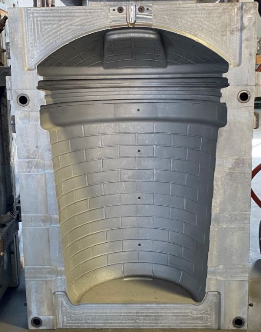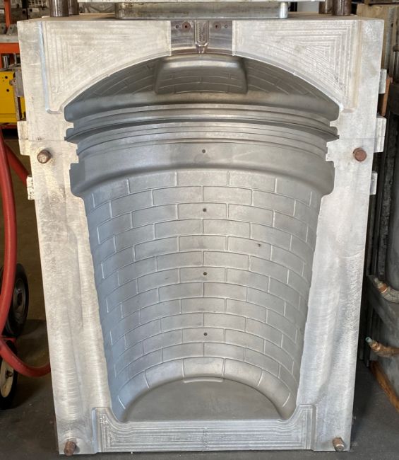 { Choice of lots: 242, 243, 244 } 32 Gallon Trash Can and Lid Blow Mold; Cavities: 1; Mold Dimensions: 42.5" x 30" x 32.5"; Part Dimensions: 36" x 23.5"; Part Weight: ; Runner: ; Weight: ; Notes: Extrusion Blow Mold, Made in The USA **Please note- there is an individual Rigging/Banding/Mold Preparation/Loading onto Truck or into Container Fee added to your invoice of $200