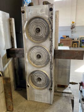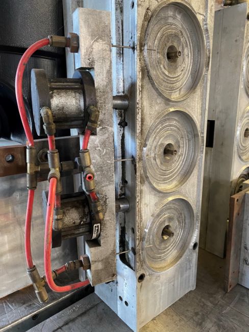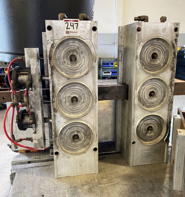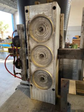 { Group of lots: 245, 246, 247 } 5" Wheel Blow Mold; Cavities: 3; Mold Dimensions: 22" x 6.5" x 12"; Notes: **Please note- there is an individual Rigging/Banding/Mold Preparation/Loading onto Truck or into Container Fee added to your invoice of $25