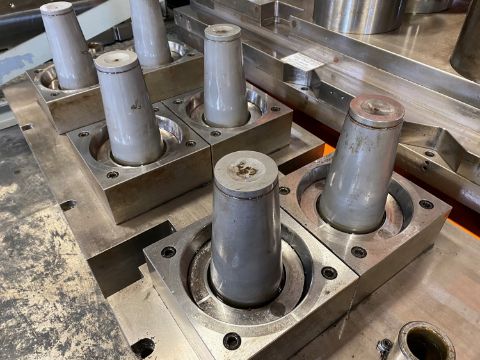 33oz Drink Cup; Cavities: 6; Mold Dimensions: 47" x 21" x 21"; Part Dimensions: 7.25" Tall; Part Weight: 33 grams; Runner: Hot; Weight: 5,000 lbs.; Notes: High Production Mold, Thin wall promotional stadium drink cup, Made in The USA **Please note- there is an individual Rigging/Banding/Mold Preparation/Loading onto Truck or into Container Fee added to your invoice of $200