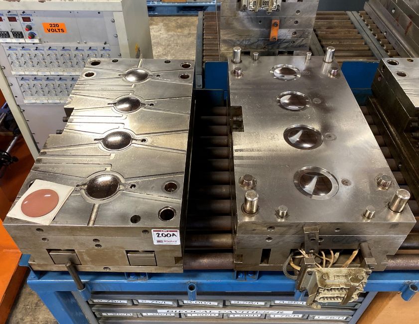 { Choice of lots: 200A } Lens Mold; Cavities: 4; Mold Dimensions: 24" x 12.75" x 14"; Part Dimensions: 89mm Pockets; Part Weight: ; Runner: Hot; Weight: 1,100 lbs.; Notes: Stainless Steel mold base with 4 pockets each to insert multiple products - Made in USA **Please note- there is an individual Rigging/Banding/Mold Preparation/Loading onto Truck or into Container Fee added to your invoice of $75; This lot is subject to the BULK BID LOT 199, if Lots 200A through and including lot 200H exceed lot 199, then the individual bids will prevail, otherwise the BULK BID will win the lots