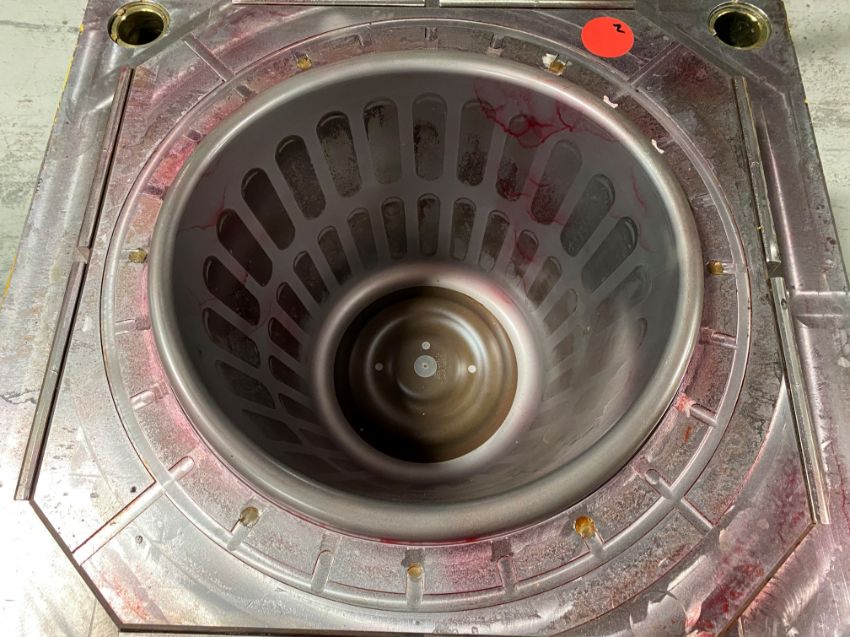 1 Bushel Designer Laundry basket; Cavities: 1; Mold Dimensions: 31.13 x 31.13 x 28.88 in; Part Dimensions: 22" x 21.25" x 16" - 1 Bushel; Part Weight: 320 grams; Runner: Hot; Weight: 6500 lbs; Notes: Modern Design Round Laundry Basket, High Production Mold, Made in the USA **Please note- there is an individual Rigging/Banding/Mold Preparation/Loading onto Truck or into Container Fee added to your invoice of $250****, Located at 7620 West 2nd Court, Hialeah FL 33014