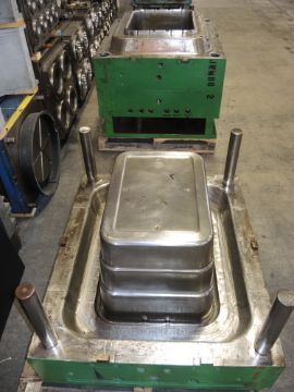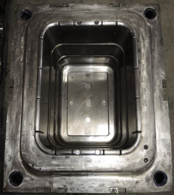 Rectangular Rope; Cavities: 1; Mold Dimensions: 45" x 38" x 36"; Part Dimensions: 40 Gallon / 151 Liter; Part Weight: 2,700 grams; Runner: Hot; Weight: 15,700 lbs.; Notes: Jumbo Size Rectangular Rope Handle Tub, Great Mold to run Recycled Material, Cold Sprue, Made in The USA **Please note- there is an individual Rigging/Banding/Mold Preparation/Loading onto Truck or into Container Fee added to your invoice of $750