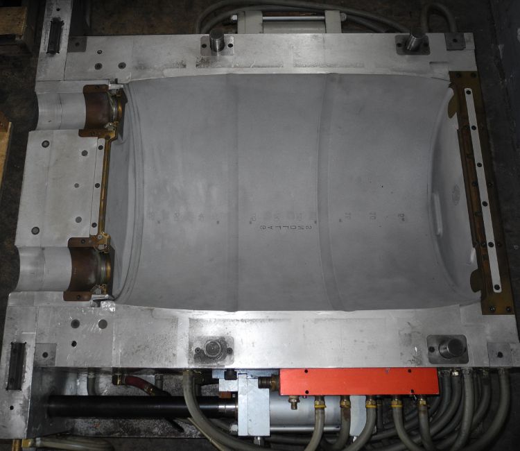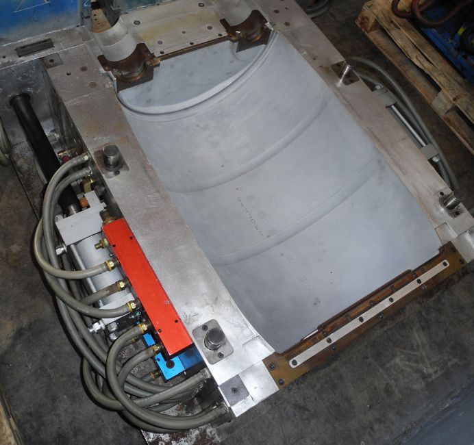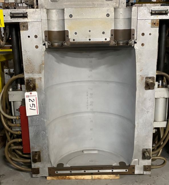 55 Gl. Drum; Cavities: 1; Mold Dimensions: 40 x 30 x 33 in; Part Dimensions: -; Part Weight: 24.5 lbs; Runner: -; Weight: ; Notes: Extrusion Blow Mold, Made in The USA, Hydraulic Take Out **Please note- there is an individual Rigging/Banding/Mold Preparation/Loading onto Truck or into Container Fee added to your invoice of $200***, Located at 7620 West 2nd Court, Hialeah FL 33014