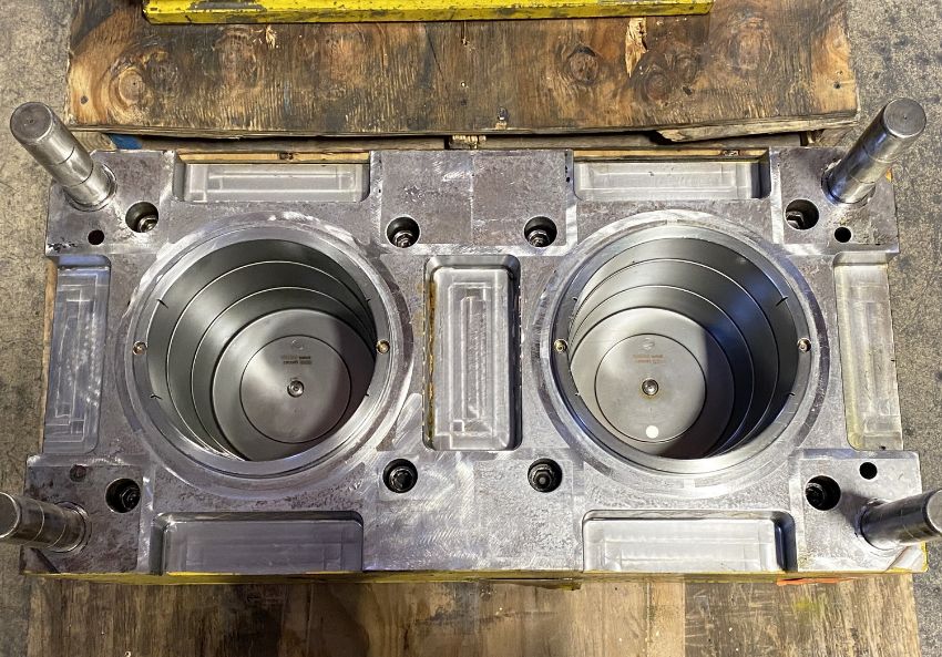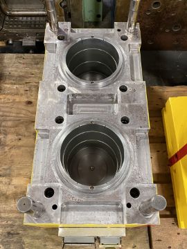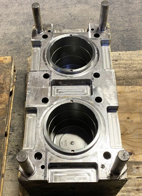 Small Rope Tub; Cavities: 2; Mold Dimensions: 31.25" x 15.5" x 20"; Part Dimensions: 9.25" Top Diam x 7" Base Diam x 8" Ht; Part Weight: N/A; Runner: Hot; Weight: 2,500 lbs.; Notes: 2 Gallon Rope Tub - Great Promotional Tub for Beer and Wine Sales - Top Grade Production Mold- Made in USA **Please note- there is an individual Rigging/Banding/Mold Preparation/Loading onto Truck or into Container Fee added to your invoice of $100