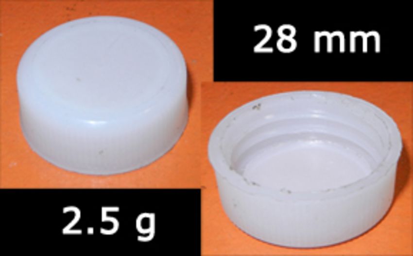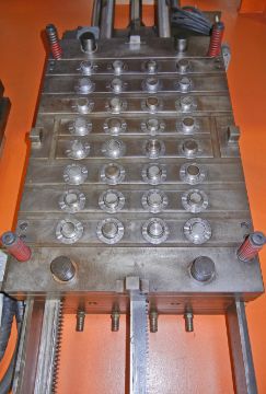 28mm/410 Threaded Cap; Cavities: 32; Mold Dimensions: 24" x 18" x 16"; Part Dimensions: 28mm; Part Weight: 2.5 grams; Runner: Hot; Weight: 1,800 lbs.; Notes: 32 Cavity Linerless Rack and Pinion 28 mm/410 Screw Cap. With 32 zone hot runner control included. - Made in USA **Please note- there is an individual Rigging/Banding/Mold Preparation/Loading onto Truck or into Container Fee added to your invoice of $75