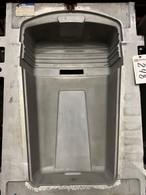 32 Gallon Trash Can and Lid Blow Mold; Cavities: 1; Mold Dimensions: 42.3 x 31.1 x 24 in; Part Dimensions: 21.7 x 18.1 x 35.8 in; Notes: Extrusion Blow Mold, Made in The USA **Please note- there is an individual Rigging/Banding/Mold Preparation/Loading onto Truck or into Container Fee added to your invoice of $200***, Located at 7620 West 2nd Court, Hialeah FL 33014