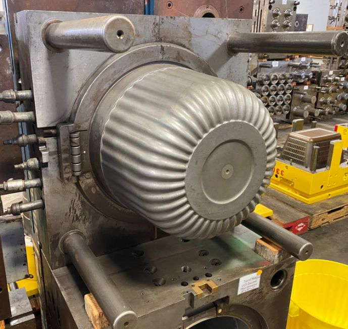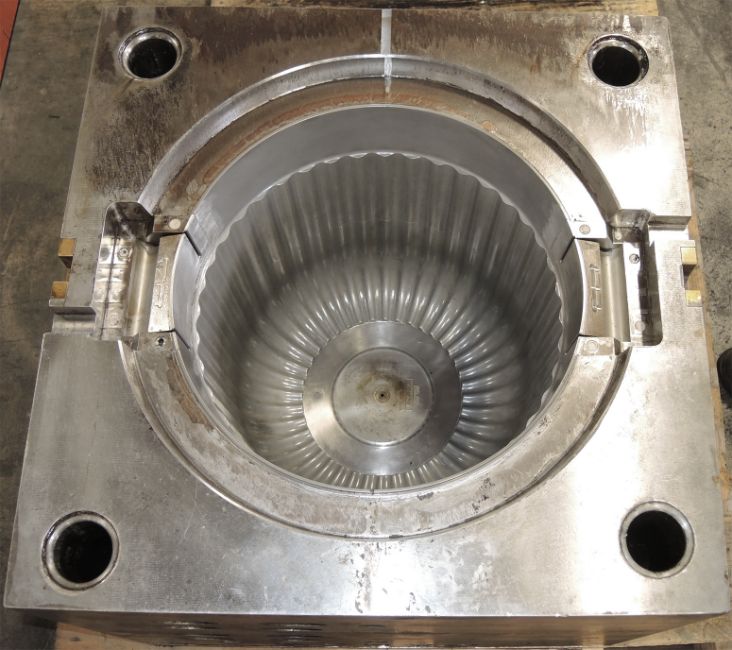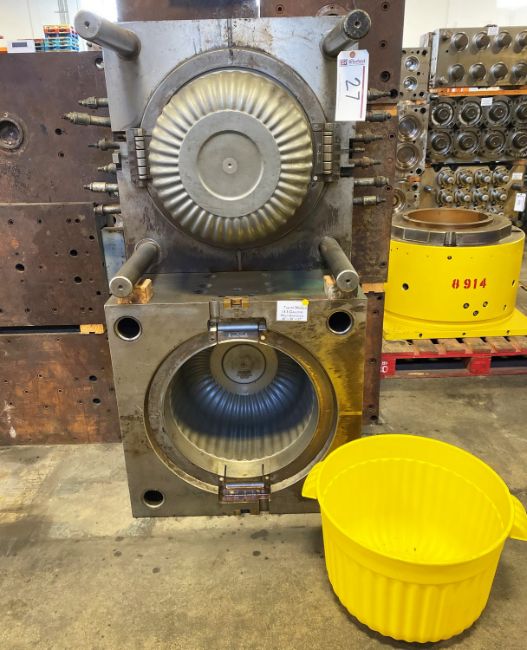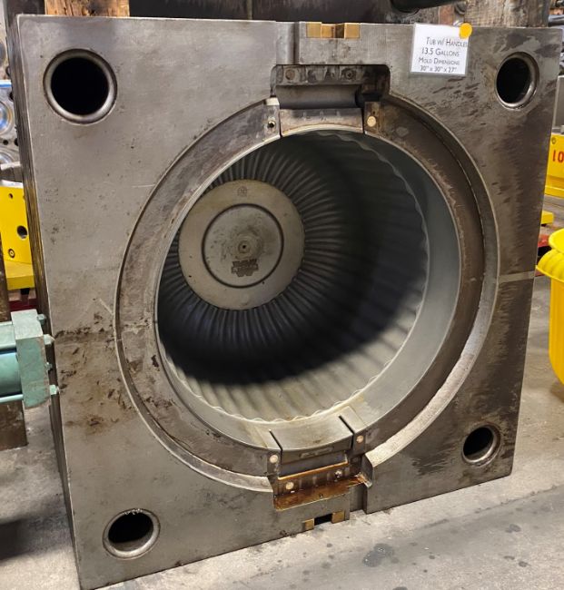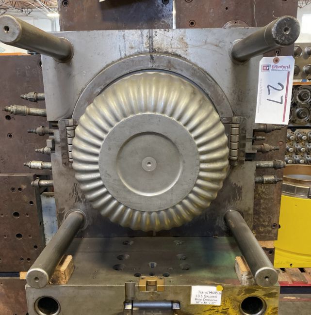 20 Gallon Super Tub Utility Bucket w/ Molded Handles; Cavities: 1; Mold Dimensions: 30" x 30" x 27"; Part Dimensions: 50 Diam X 34.5 cm; Part Weight: N/A; Runner: Hot; Weight: 6,200 lbs.; Notes: 50 Liter Basin - AAA Mold - Made in USA **Please note- there is an individual Rigging/Banding/Mold Preparation/Loading onto Truck or into Container Fee added to your invoice of $250