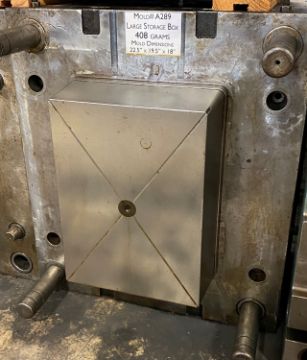 Sweater Box; Cavities: 1; Mold Dimensions: 22.5" x 19.5" x 18"; Part Dimensions: 14.5" x 10.5" x 4.5"; Part Weight: 530 grams; Runner: Hot; Weight: 2,000 lbs. / Sweater Box Lid; Cavities: 1; Mold Dimensions: 25" x 19" x 12.5"; Part Dimensions: ; Part Weight: ; Runner: Hot; Weight: 1,550 lbs. ; Notes: Designer Store & View Box and Cover - 2.5 Gallon/10 Liter - Hi Polish for Clarified PP or PS Made in USA **Please note- there is an individual Rigging/Banding/Mold Preparation/Loading onto Truck or into Container Fee added to your invoice of $150