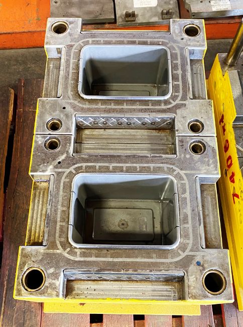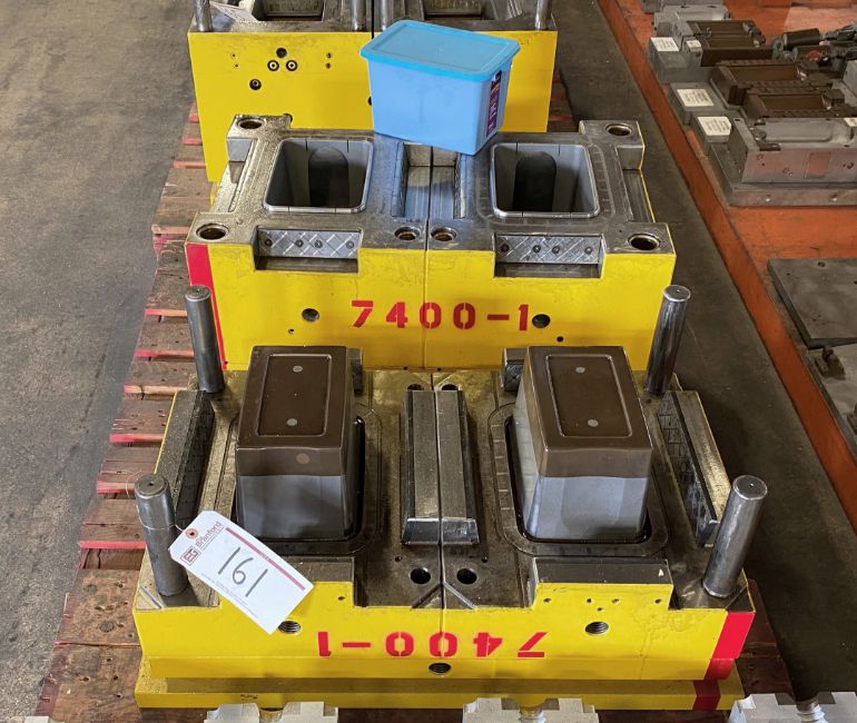 Mini Tote Lid; Cavities: 2; Mold Dimensions: 23.5" x 21.5" x 19"; Part Dimensions: 9.75" x 7" x 6.125"; Part Weight: 54 grams; Runner: ; Weight: 2,500 lbs. / Mini Tote; Cavities: 2; Mold Dimensions: 31.75" x 17.5" x 23"; Part Dimensions: ; Part Weight: 153 grams; Runner: ; Weight: 3,300 lbs.; Notes: Like New A1 quality Molds. Hot Runner Production Molds - Made in USA **Please note- there is an individual Rigging/Banding/Mold Preparation/Loading onto Truck or into Container Fee added to your invoice of $225