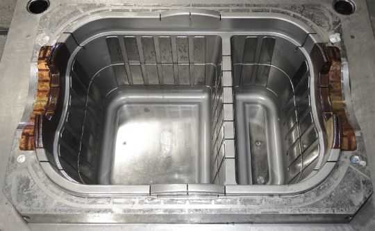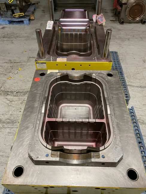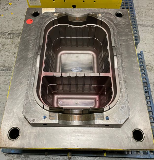 Divided Laundry Basket; Cavities: 1; Mold Dimensions: 31 x 39 x 37 in; Part Dimensions: 25.9 x 18.5 x 12.5 in; Part Weight: 1,284 Grs; Runner: ; Weight: 11,000 lbs.; Notes: Modern Design, Divided Laundry Basket, High Production Mold, Made in The USA **Please note- there is an individual Rigging/Banding/Mold Preparation/Loading onto Truck or into Container Fee added to your invoice of $500****, Located at 7620 West 2nd Court, Hialeah FL 33014