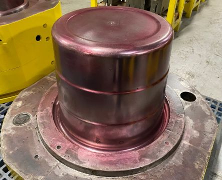Round rope tub; Cavities: 1; Mold Dimensions: 40" x 40" x 26"; Part Dimensions: 70 Liter / 18 Gallon; Part Weight: -; Runner: Cold; Weight: 10,500 lbs.; Notes: Jumbo Size Rope Handle Tub, Great Mold to run Recycled Material, Cold Sprue, Made in The USA **Please note- there is an individual Rigging/Banding/Mold Preparation/Loading onto Truck or into Container Fee added to your invoice of $500****, Located at 7620 West 2nd Court, Hialeah FL 33014