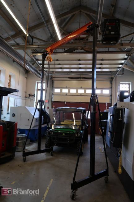 Titan 1-Ton Rolling Gantry Crane, 93-3/8" Opening, Has Been Welded To Create A 12'-6" Clearance Height, Harrington 1-Ton Manual Chain Hoist, Located at 55 Main Street, Potsdam, NY 13676