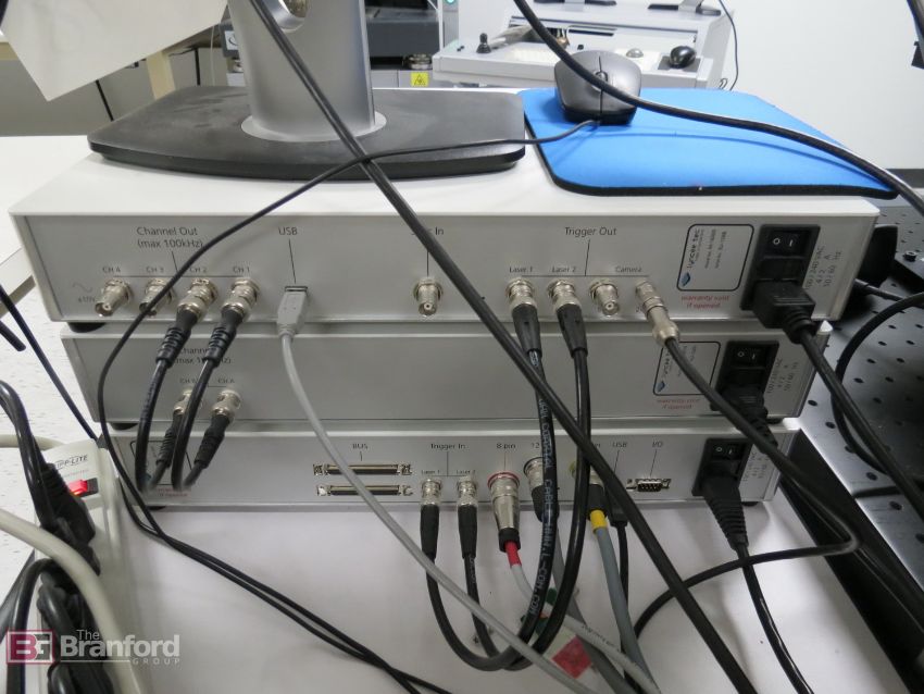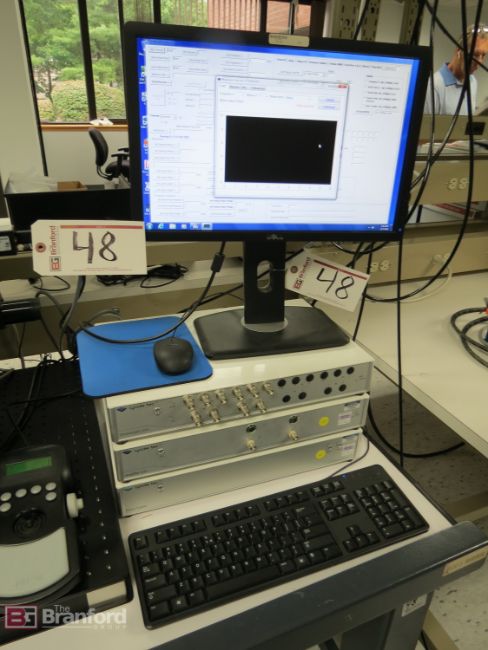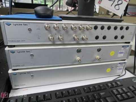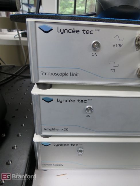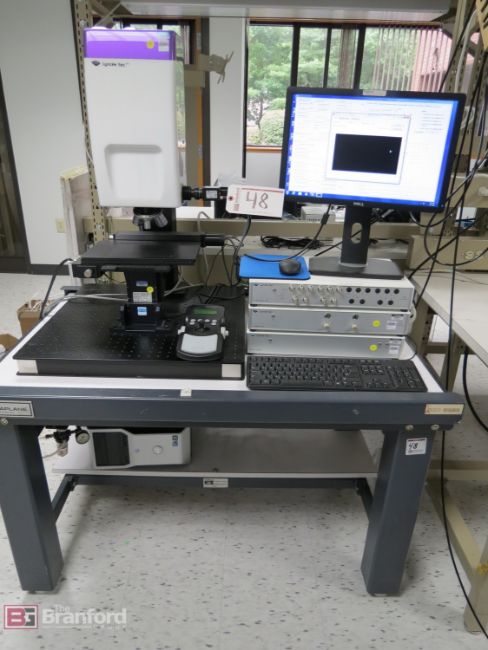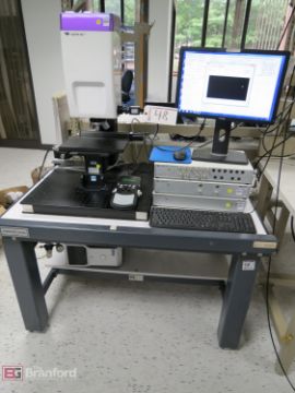 Lyncee Tec M-10020 Digital Holographic Microscope, w/ Lyncee Stroboscopic Unit, 20x Amplifier and Power Supply, w/ Baumer TXF14 Camera, Prior FB205/E Stand and Controller, Mounted on ThorLabs Bread Board, w/ PC, Software and Monitor, Including Kinetic Systems Vibraplane Isolation Table Model: 1201-02-11 (2013)