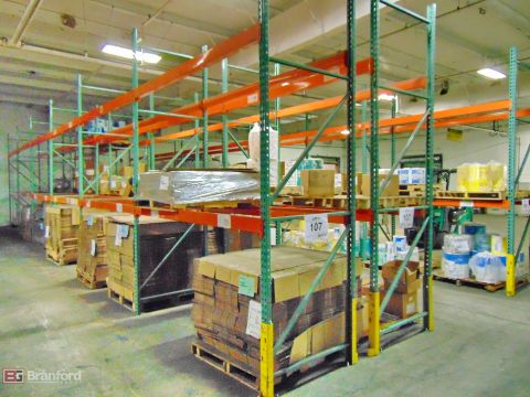 (12) Sections of teardrop style pallet racking incl (14) approx. 12' uprights, (48) approx. 8' crossmembers