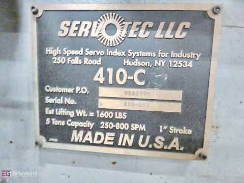 Servotec 410-C high speed servo notcher, 5-ton, S/N 410-897, 250-800-SPM, 1" stroke