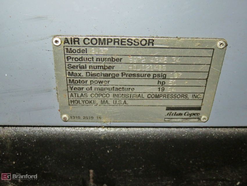 Atlas-Copco GA37 rotary screw air compressor, 50-HP, S/N H0L021498